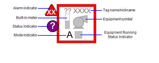 A running state indicator is used to represent various non-alarm conditions associated with an object, such as abnormal data quality or control system states. See Status Indicators in the section on Common Object Properties.