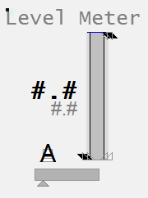 The meter symbol for a Level meter is a narrow box shape that resembles a “skinny” vessel. The graphical PV is shown as a darker fill within the vessel. The fill rises and falls to indicate the actual level.