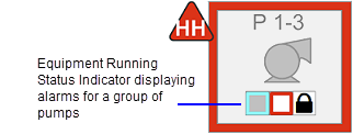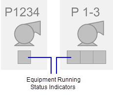 A primary reason for using Equipment Running State Indicators is to allow equipment to be displayed on a page as group. For example, it is possible to represent a group of up to five pumps using one pump symbol and four Equipment Running State Indicators.