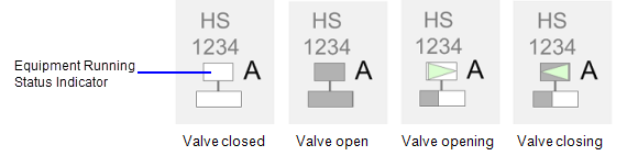 For valves, the Equipment Running State Indicator symbols are shown in the valve head instead of a separate box.