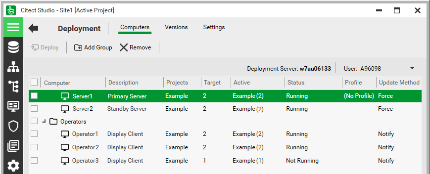 To select multiple computers, select the first computer and hold the Shift key while you use the up and down arrow key to select adjacent rows.