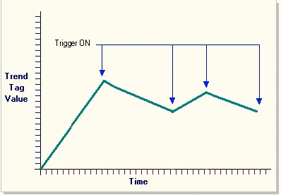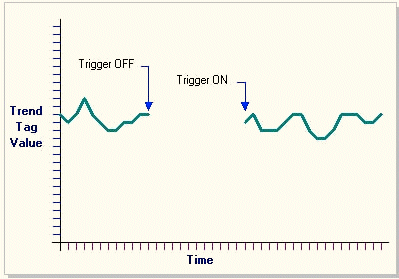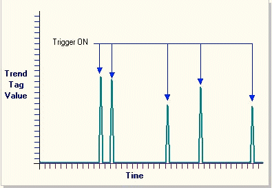 The Trigger is checked each sample period. If the Trigger is TRUE (or has just changed from FALSE to TRUE, in the case of event trends), the value of the Expression is logged. Examples
