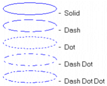 The width of the outline of the ellipse (in pixels). You can change the width by clicking the up and down arrows to the right of the field, or by entering another value in this field. If you make the line more than 1 pixel wide, the line style will be solid.