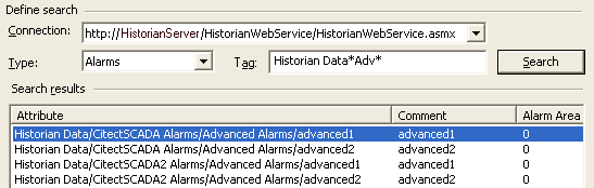 - You can then search the available data on the specified server. This process is different for a SCADA server, and a Historian server.