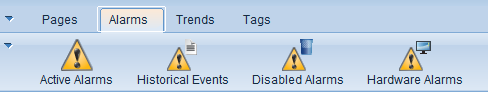 Alarm pages present a list of alarms to an operator. There are different types of alarm pages, each designed to suit a specific purpose. For example, an alarm page may only display alarms that are currently active, or it may include a historical summary of all alarms that have occurred.