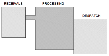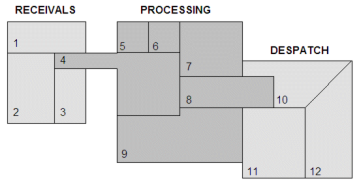 A simple manufacturing plant could be divided into just three areas - receipts, processing, and dispatch.