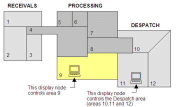You can simplify the configuration of a complex system by creating a group from multiple areas. For example, areas 10, 11 and 12 in the example above could be grouped and labeled as "Despatch" (see Create Area Groups).