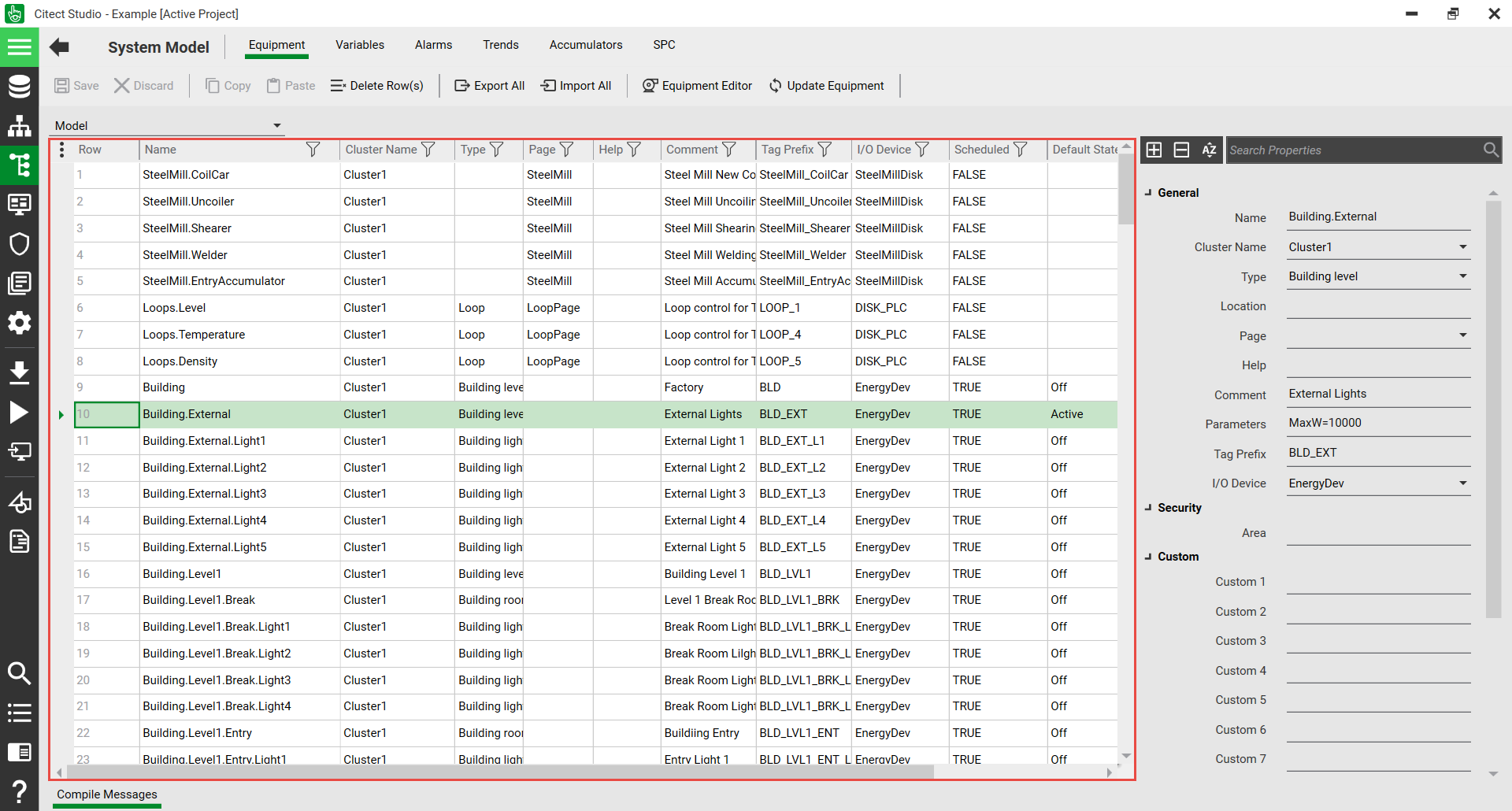 The Grid Editor is an interface that displays topology, System Model, security and standards information in a tabular format in numbered rows. Use the Grid Editor to add, edit or delete values individually or in bulk.