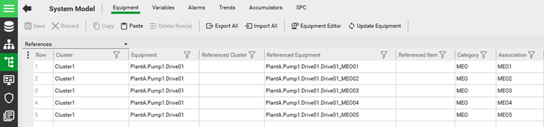 The link created between the grouping equipment object and the referenced equipment does not need to be one of parent/child, instead the reference can be made to equipment outside the hierarchy. See Equipment References for more information.