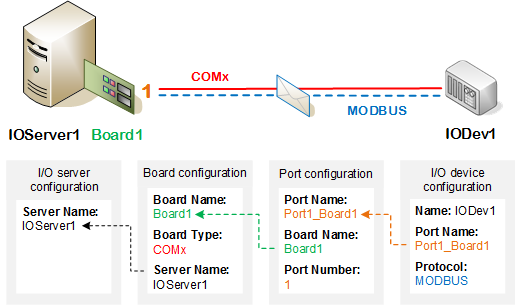 This defines which board on your I/O server computer to use (for example, the mother board, network card, serial board or a PLC communication card). See Add a Board.