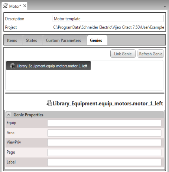 You can use the Equipment Editor to link a genie to an equipment type. This can help simplify the process of creating graphics pages for your project, as you are able to deploy multiple equipment instances as genies from within the Equipment Editor's equipment hierarchy.