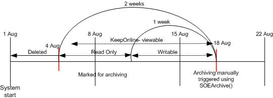 If archiving is manually triggered on Saturday 18 August 15:00:00, any data reported after midnight on Saturday 4 August will remain viewable via the Alarm Summary or SOE pages for two weeks. Any data reported before midnight on Saturday the 4th will be deleted.