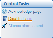 If the Action tab is not available, it means the page was created using an early version of the alarm page template. If this is the case, the Disable Page command will available via the Control Tasks panel.