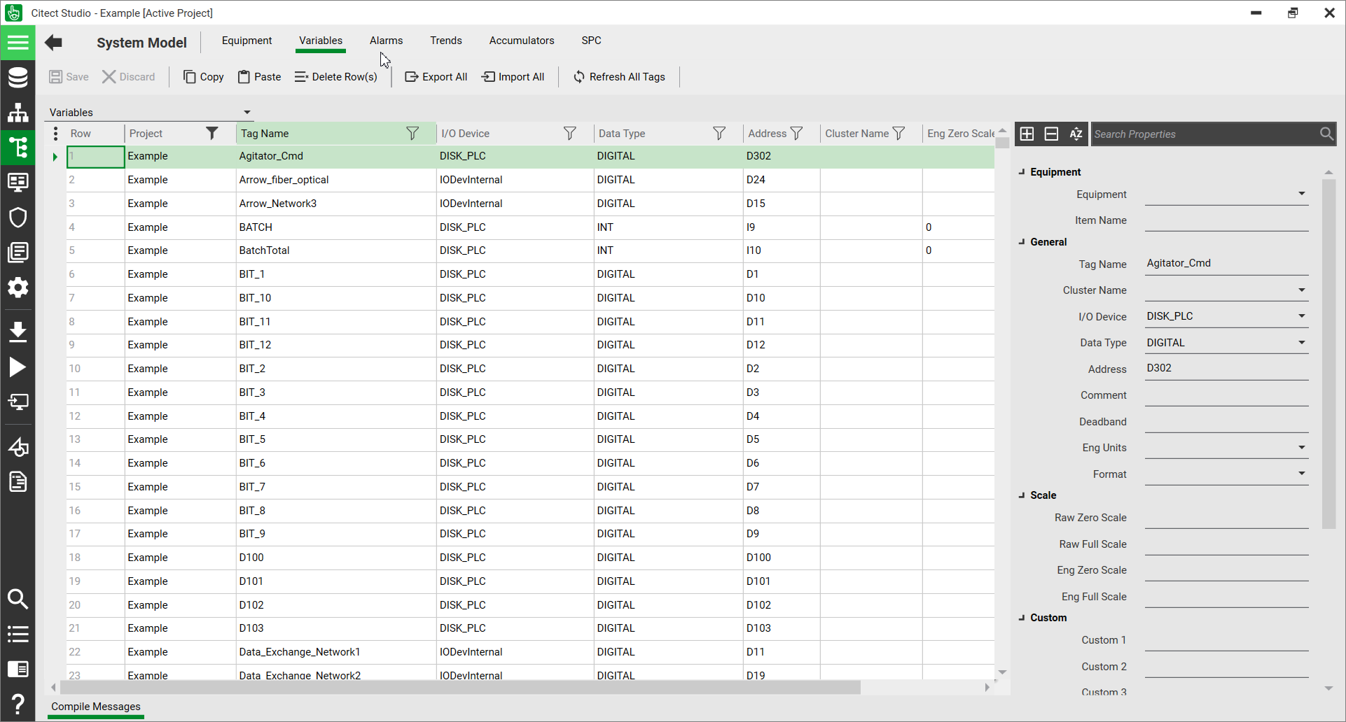 - Click the column header of the field that you want to use for sorting. For example, if you wish to sort data by Tag Name, click the header Tag Name.