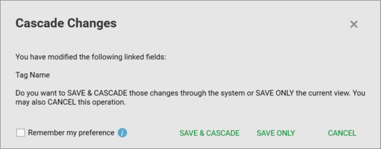 If you set the Cascade changes across the system option to Prompt, the following message will be displayed.