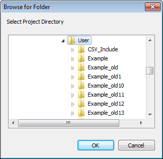 The Browse for Folder dialog box appears. Select the required project.
