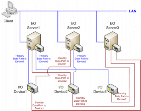 In this scenario, we have three I/O servers connected to three I/O devices in the following manner: