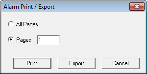 The Alarm Print/Export dialog will appear.