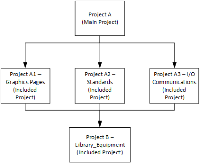 For example, you could use one project for common configuration for standardization and then a separate project for each section of a plant, or for each production process. This way, you can develop and test each of the smaller projects and system standards before including them in the main project. This also allows multiple users to work simultaneously in the configuration environment with each user working on a separate project.