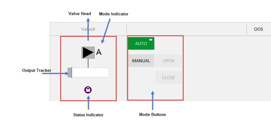 The Simple Valve faceplate comprises the following components: