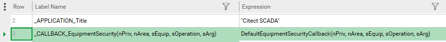 The '_CALLBACK_EquipmentSecurity' label is set by default in the SA_Style1_MultiRes starter project. To view go to Standards | Labels.