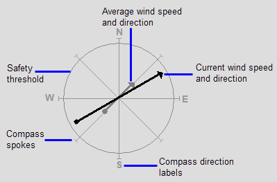 The image below shows the elements that make up the wind compass object.