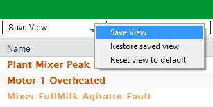 To save the current arrangement of an alarms list as a view: