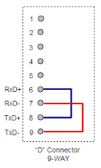 The diagram below shows the loop-back connections to use with RS-422 or RS-485.