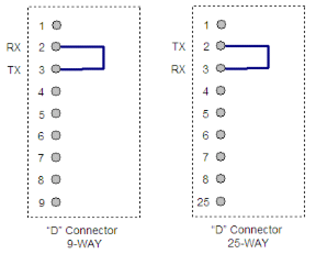 The diagram below shows the loop-back connections to use with RS-232.