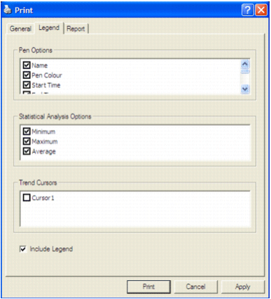 - In the Print dialog box, click the Legend tab. The Legend panel appears.