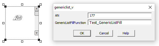 In the example below, "Test_GenericListFill" has been entered. To view the custom Cicode that this function calls, see the Cicode examples below.