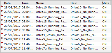 Within these groups, alarms are listed according to the time they occurred.