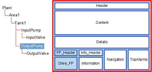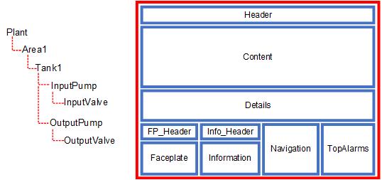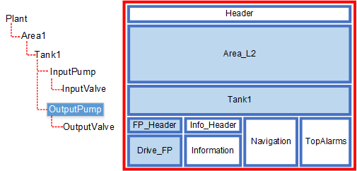 'Plant' is considered next. It only has content “Overview_L1” of content type L1, and the only pane that supports that ("Content") has already been filled. The system will then go back to the original context, 'Tank1', and move down the hierarchy to its first child. Only the first child is ever considered when moving down the hierarchy.