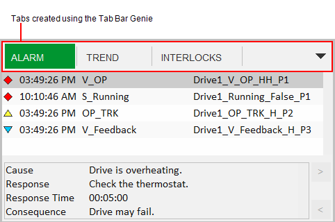 Lastly, you need to configure the Tab Bar Genie parameters. To display the Genie Parameters dialog box, double-click on the Genie, or select Genie Parameters from the right-click menu. Make the required adjustments to the following fields.