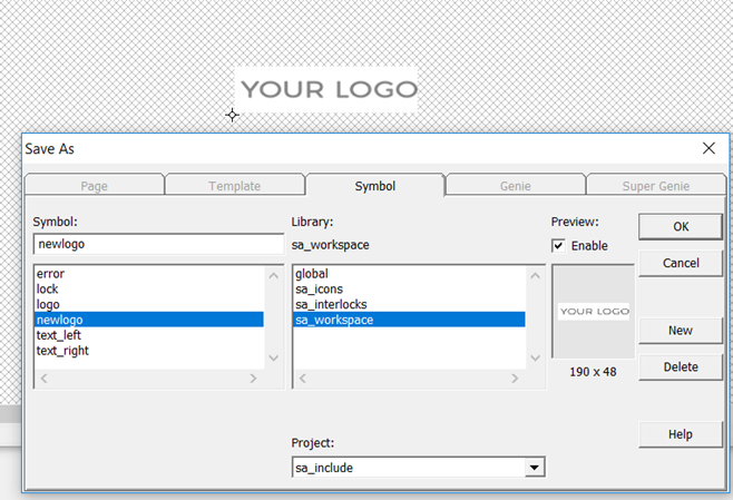 Note: If you create a new logo using the drawing tools in Graphics Builder, before saving the symbol you need to select all of the objects and select Convert to Bitmap from the Tools menu.