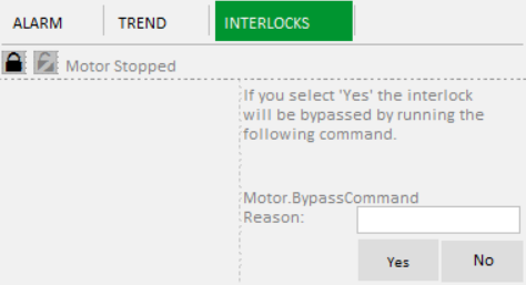 Interlocks can be configured to be bypassed. This means an operator can manually override the interlock, forcing the locked process to be available to start. Interlocks need to be either cleared or bypassed before the equipment can be restarted.