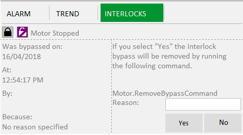 When an Interlock is bypassed the lock icon remains and a purple bypassed symbol (