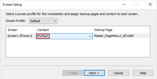 To associate a Level 1 entry with the workspace on a particular screen, use the Context column on the Screen Setup page of the Computer Setup Wizard.