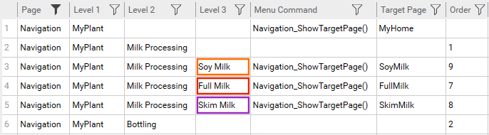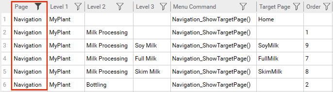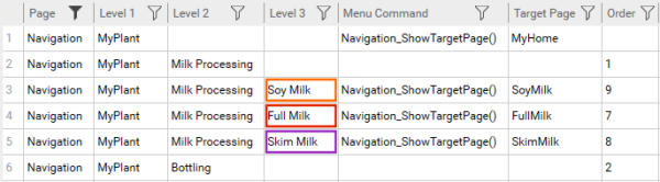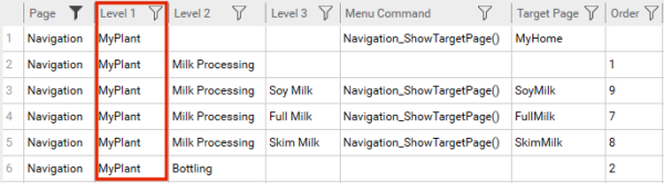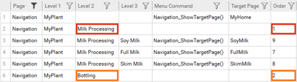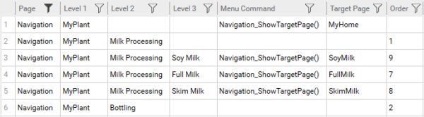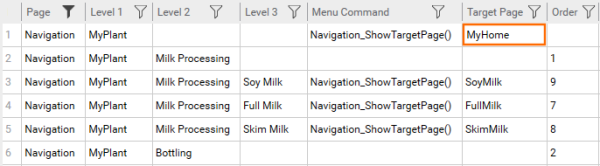 Note: It is recommended that you do not specify a Target Page for a Level 2 menu entry, as this will allow an operator to view the tab and assess the associated alarms without navigation away from the page that is currently displayed.