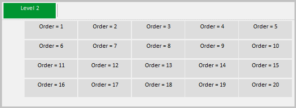 The Order field determines the arrangement of buttons on a tab, as mapped out below.