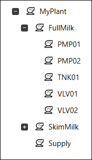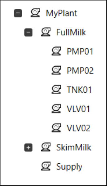 An equipment hierarchy provides a model of a plant that can be used to reference the machinery or processes being monitored (see Equipment).