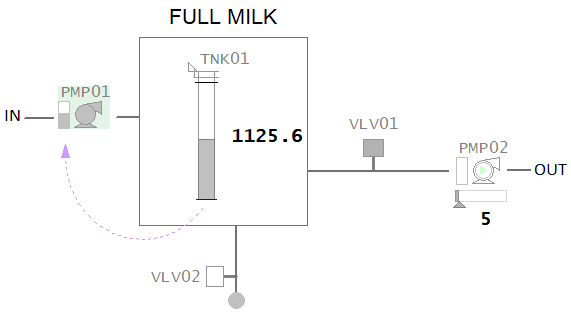 The example below is a graphics page that represents a tank in a milk production facility.