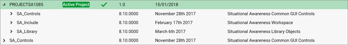 When you create a Situational Awareness project that is not based on the starter project but created using the Situational Awareness project template, only the SA_Library project is included, which in turn includes the SA_Controls project. For more information, see Create a Standard Project.