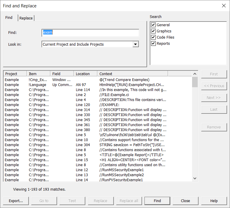 You can enter an entire string or a portion of the string you want to find. For example, typing BIT will return any string containing BIT, such as BIT_1, BITE, HABIT, HABITS, and so on. You cannot enter wildcard characters, but you can include special characters, as well as spaces if you want.