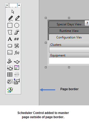Once pasted on the master page, move and position the Scheduler control outside the page border.